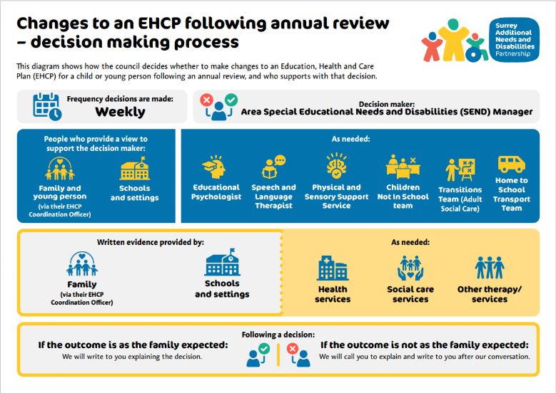 We’re pleased to share a new set of easy-to-follow graphics that explain how decisions are made during the Education, Health and Care Plan (EHCP) process. These visuals are designed to help everyone understand the steps involved and how we work together to support children and young people with Special Educational Needs and Disabilities (SEND).