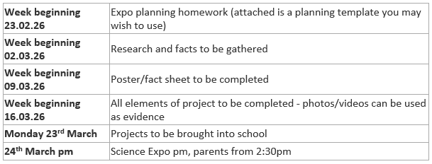 Homework is always shared on a Thursday and due in the following Tuesday.